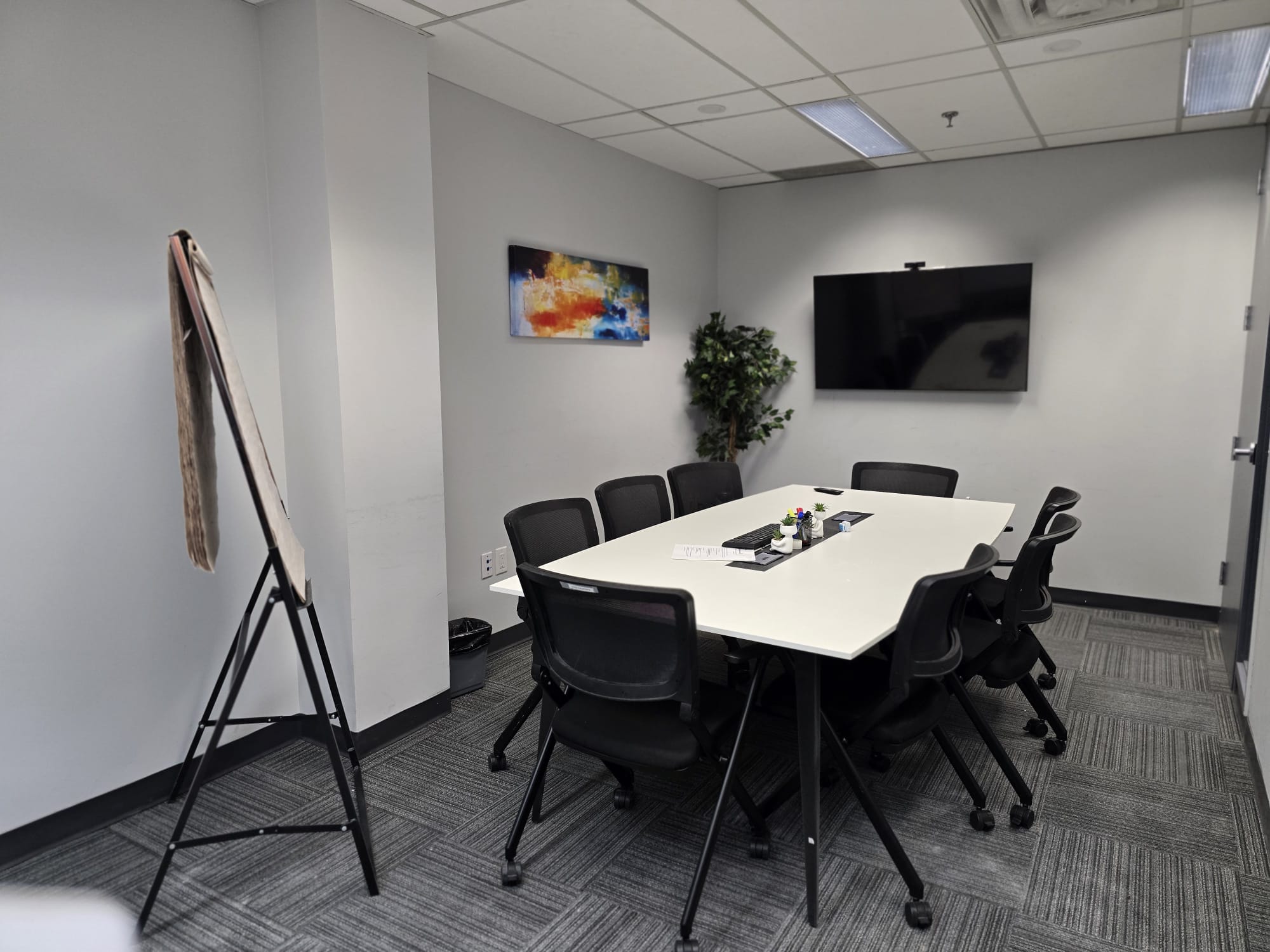 • 75” TV Screen, Flip Chart, Whiteboards